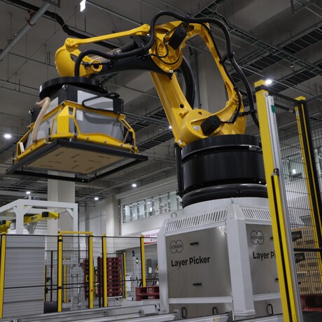 · 다관절 로봇팔로 박스를 파렛트에서 분리 후 컨베이어로 투입
