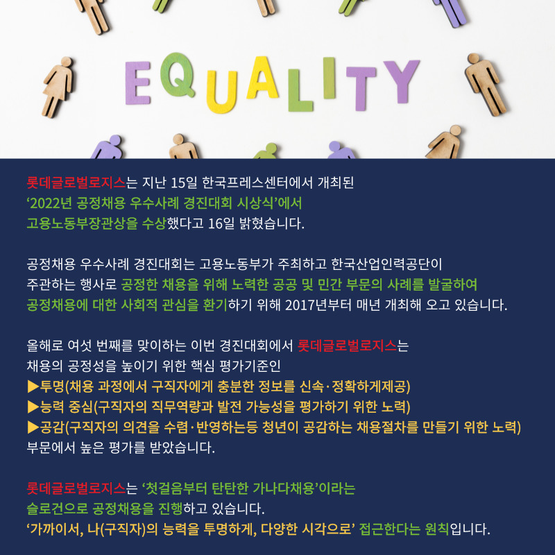 롯데글로벌로지스, ‘공정채용 우수사례 경진대회’ 고용노동부장관상 수상