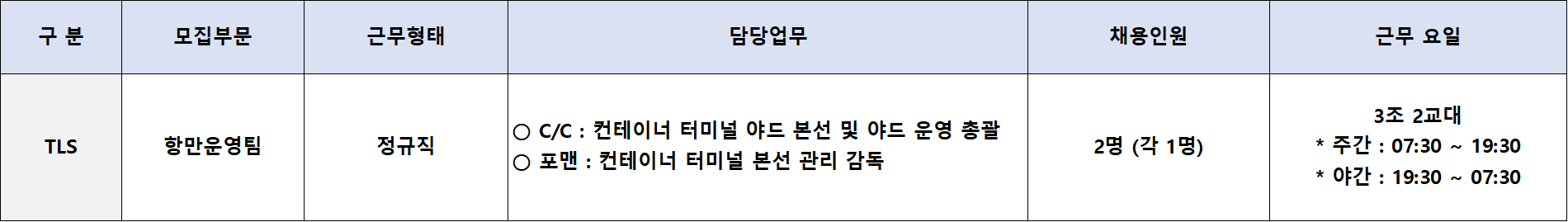 | 제목 | 항만운영팀 C/C, 포맨 정규직 채용(~3/8) |